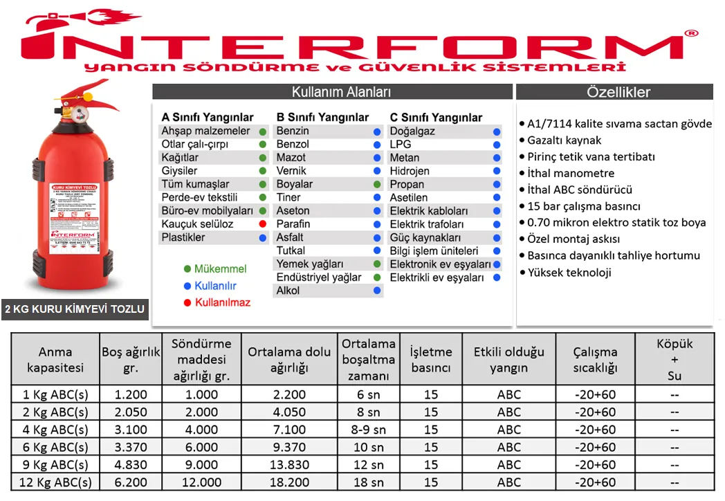 2 KG Kuru Kimyevi Tozlu Yangın Tüpü