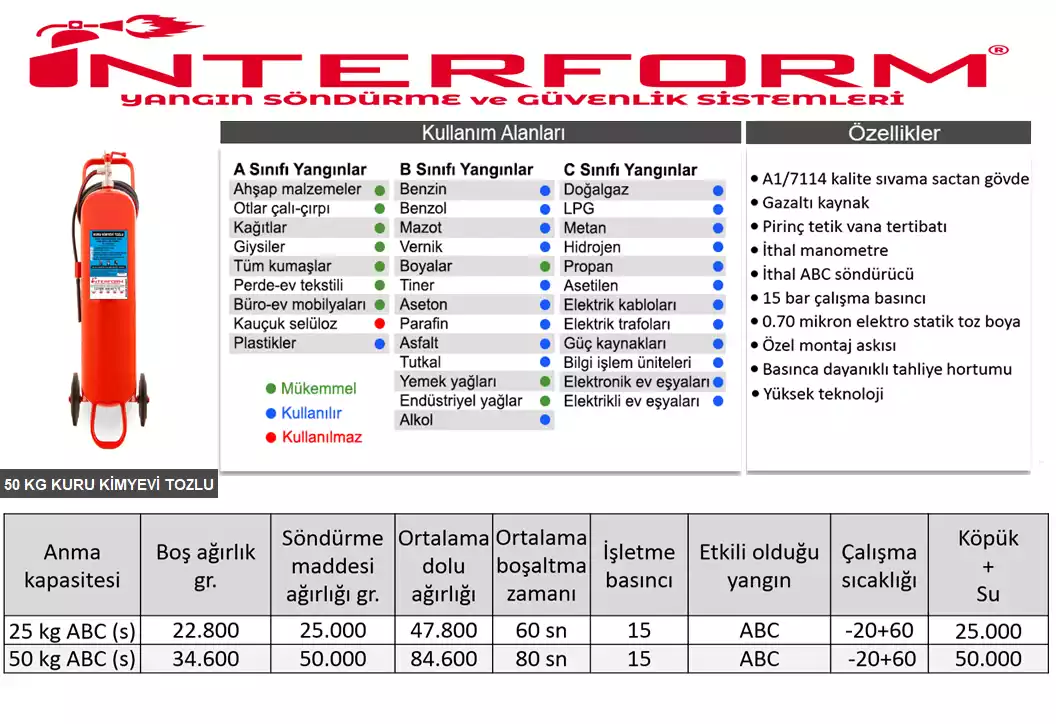 50 KG Kuru Kimyevi Tozlu Yangın Tüpü